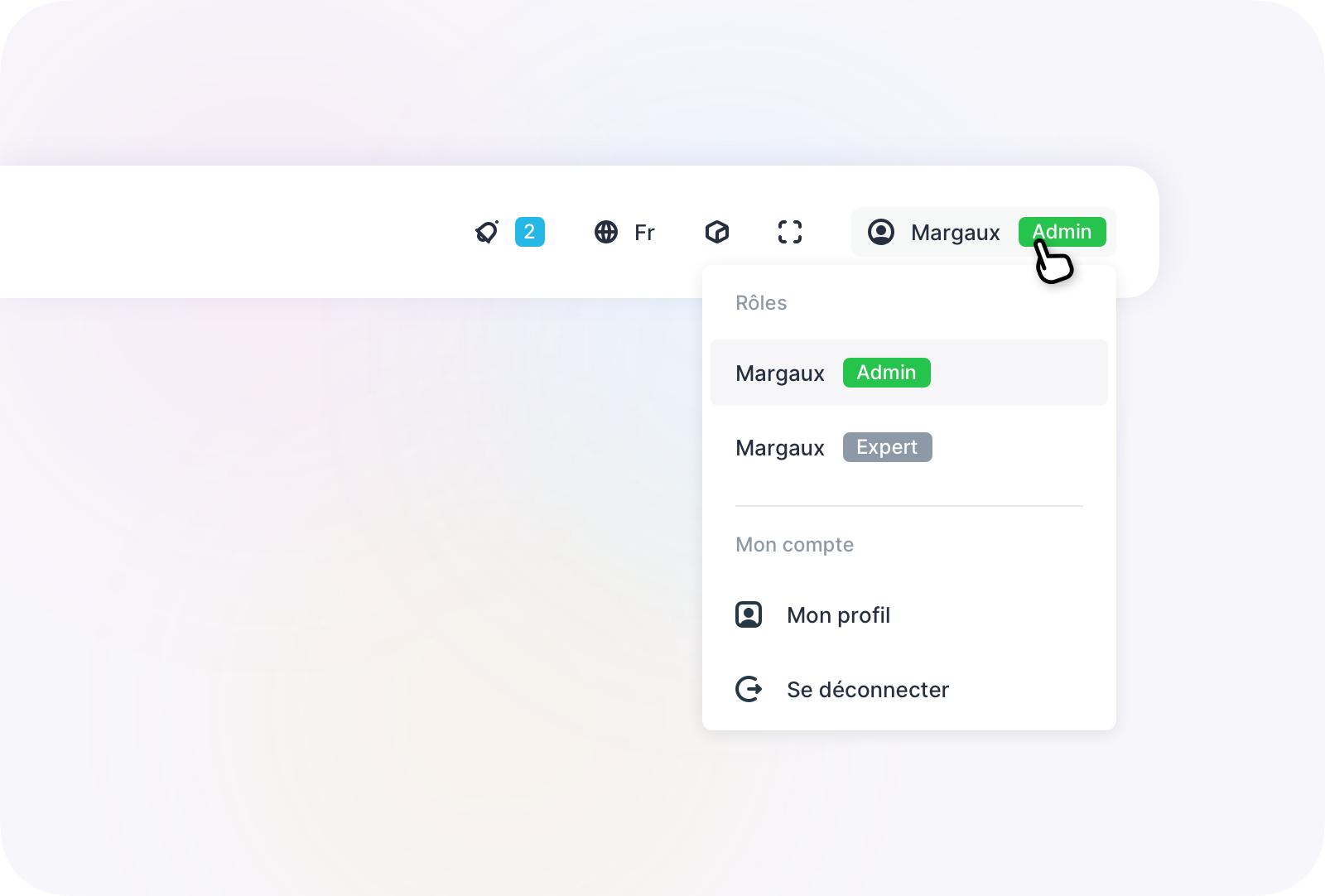 Pour pouvoir continuer à exécuter les étapes suivantes, vous devez avoir la casquette d'administrateur. Pour ce faire, vous pouvez utiliser le menu supérieur droit et changer de rôle en sélectionnant celui qui convient.